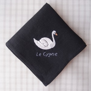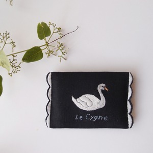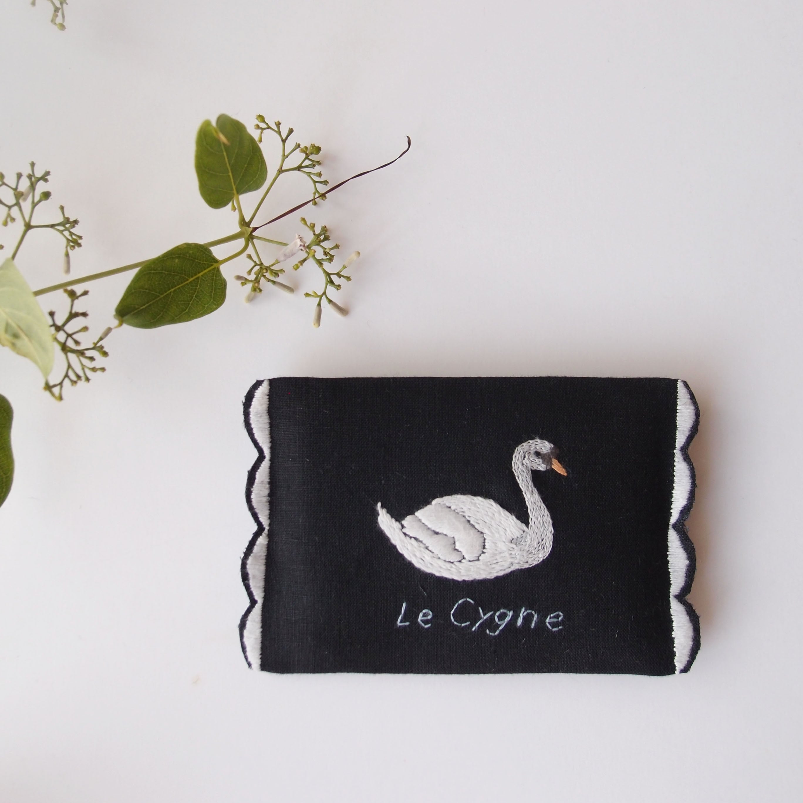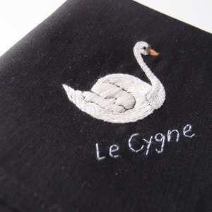 ブラックによく映える白い波紋とスワンの刺繍を楽しんでくださいね。
